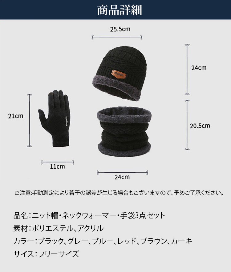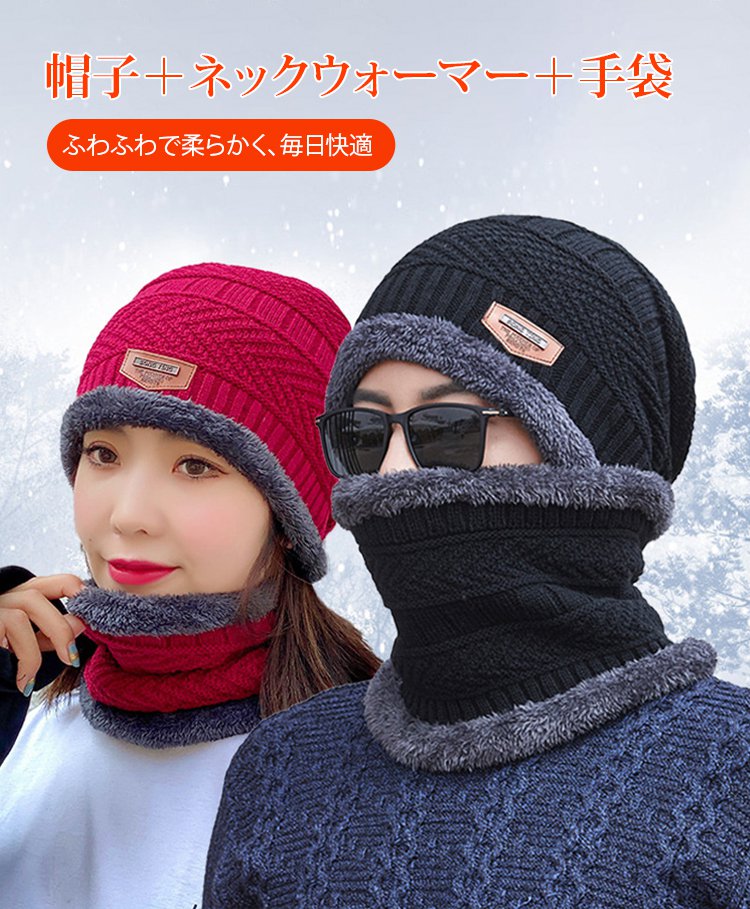 ニット帽・ネックウォーマー・手袋3点セット