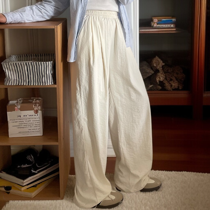 クリームムースヤマモト パンツ レディース 夏 カジュアル 多用途 ドレープ クリーム パンツ テクスチャード レイジー アイスシルク ワイドレッグパンツ